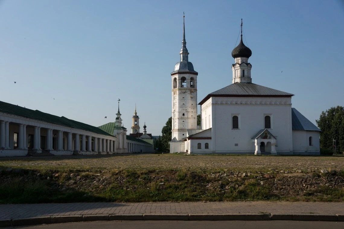 Уникальность площади состоит в том, что вот уже более девяти веков ее размеры, планировка и назначение остаются прежними. Площадь известна тем, что именно на ней отплясывал герой Вицина в фильме «Женитьба Бальзаминова». Прямо перед фасадом Гостиного двора вы видите «теплую» Воскресенскую и «холодную» Казанскую церкви. В настоящее время Гостиный двор открыт для посещения в любой день недели, а все заведения развлекательного комплекса, учитывая популярность данного места у отдыхающих, работают допоздна.