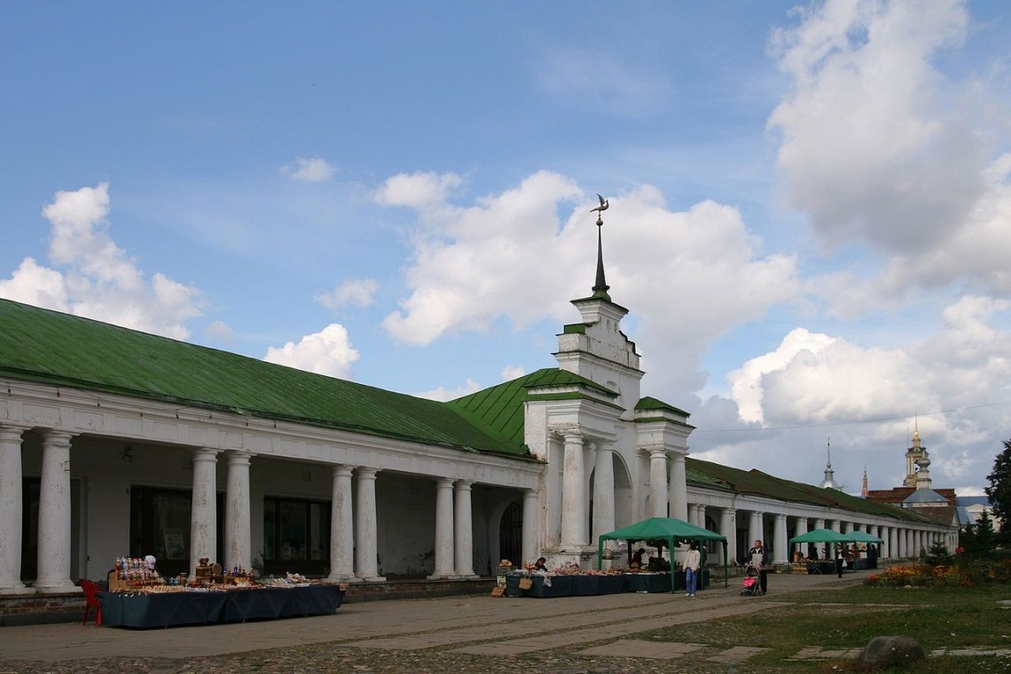 Уникальность площади состоит в том, что вот уже более девяти веков ее размеры, планировка и назначение остаются прежними. Площадь известна тем, что именно на ней отплясывал герой Вицина в фильме «Женитьба Бальзаминова». Прямо перед фасадом Гостиного двора вы видите «теплую» Воскресенскую и «холодную» Казанскую церкви. В настоящее время Гостиный двор открыт для посещения в любой день недели, а все заведения развлекательного комплекса, учитывая популярность данного места у отдыхающих, работают допоздна.