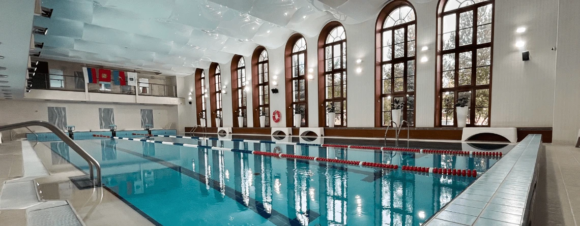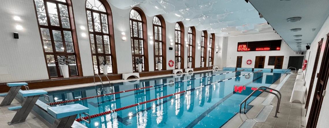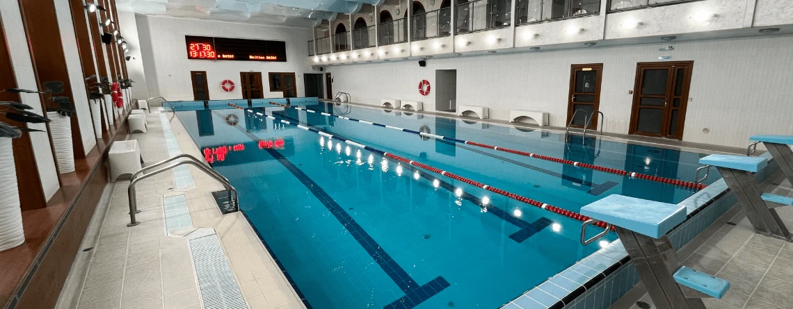 Вас приятно удивит качество воды, очищенной с помощью современной системы, использующей ионы серебра и меди, что обеспечивает кристальную чистоту без применения хлора. Для полноценного отдыха Вы можете посетить финскую сауну, расположенную отдельно в мужской, отдельно в женской раздевалке, а после сеанса насладится чашечкой ароматного чая, в уютной атмосфере холла нашего спорткомплекса.