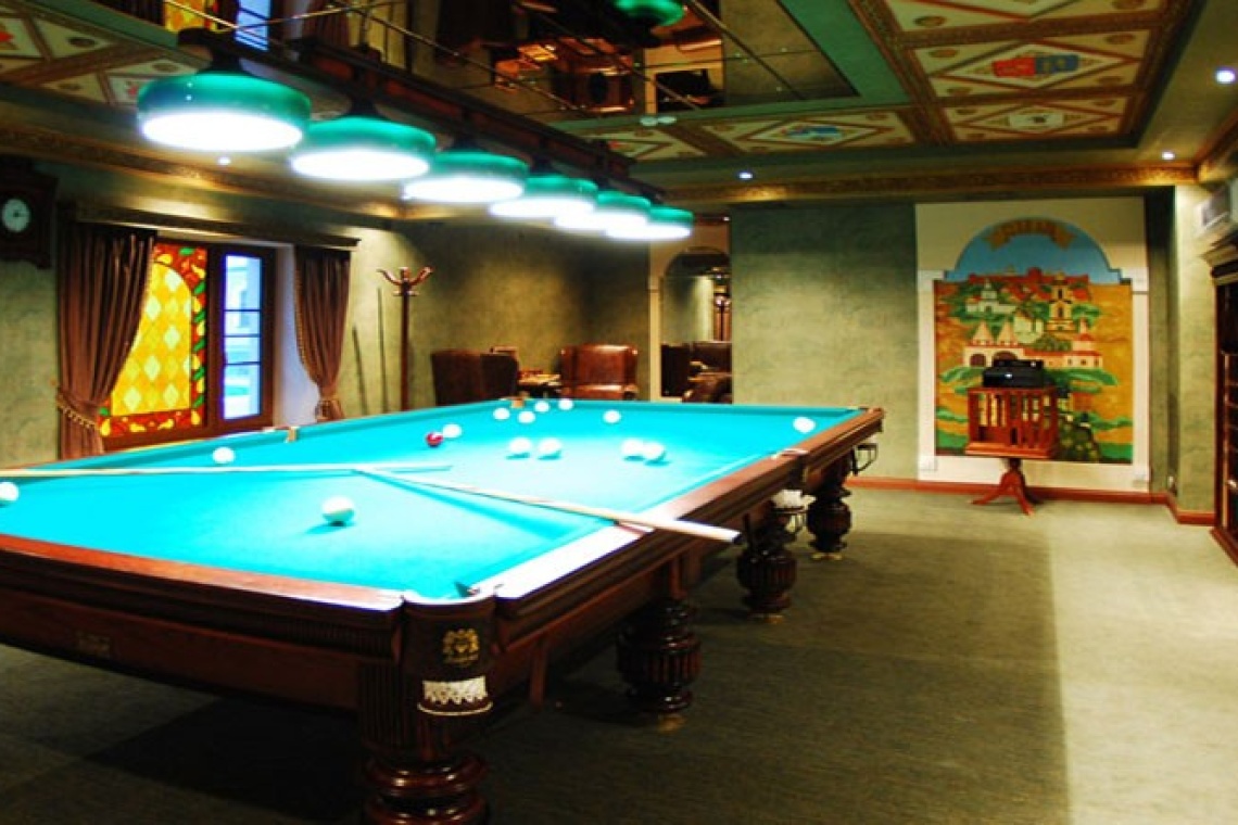 Приватное помещение, в котором присутствуют отголоски средневекового стиля. Здесь принято отдыхать небольшими компаниями. Нередко сюда заходят гости, стремящиеся к уединению или деловые люди, которые не прочь пропустить после трудного дня стаканчик элитного напитка, сидя в удобном кожаном кресле. В центре «Гербового» зала расположен бильярдный стол, так что без развлечения вы точно не останетесь.