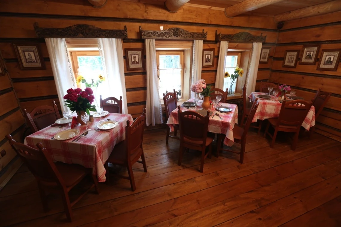 В меню представлены блюда, ставшие символом русской кухни: ароматные щи и наваристая уха, борщ с гренками, аппетитное домашнее сало, нежные блинчики с икрой и пельмени ручной лепки, жареная картошка с грибами и соленьями, котлеты из щуки. Гастрономические впечатления дополняет богатая карта традиционных суздальских напитков: несколько видов медовухи, хреновуха, душистый бочковой квас, а также ягодные наливки и настойки.